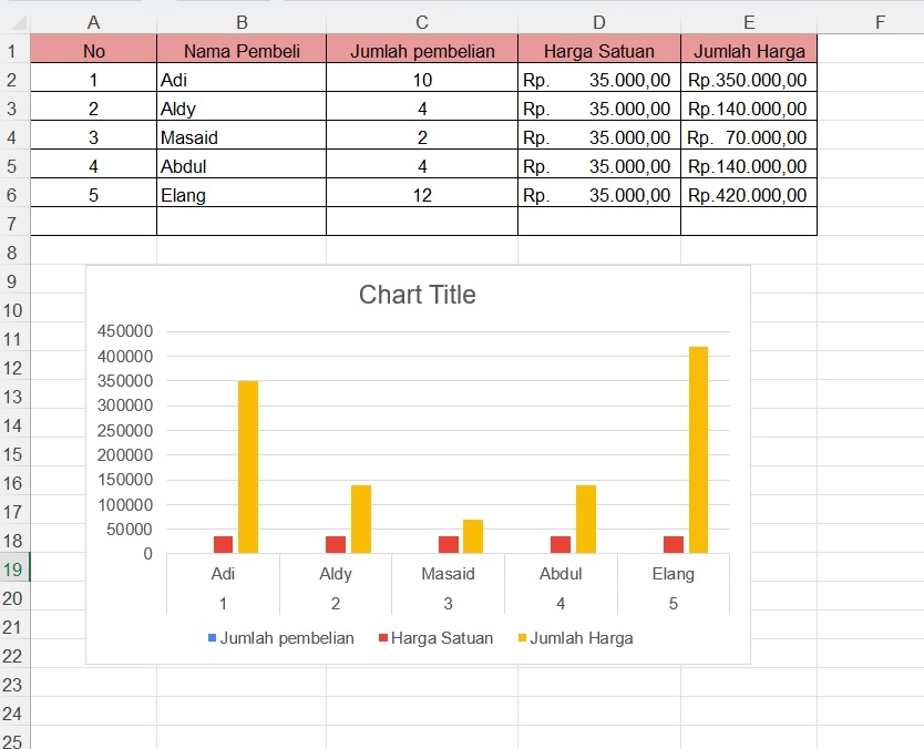 Grafik ini sangat cocok untuk membandingkan beberapa kategori, misalnya membandingkan penjualan per bulan atau jumlah pelanggan per tahun.