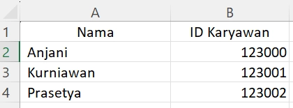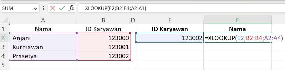 Misalnya Teman Belajar hendak mencari nama karyawan berdasarkan ID, tetapi kolom “Nama” berada di sebelah kiri: